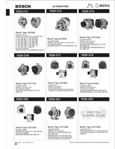 Bosch Type, 12V/120A             Bosch Type, 12V/156A              Bosch Type, 12V /125A                       Bosch  Type,24V/80A               Bosch  Type, 12V/120A             Bosch  Type, 12V/65A